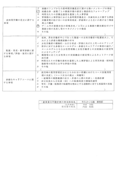 (1)残業時間、有給休暇の取得について個人差があるため、業務の効率化を進め時間(業務や家庭)に余裕を作る必要がある。