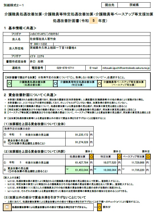 令和5年度の介護職員処遇改善加算・介護職員等特定処遇改善加算・介護職員等ベースアップ等支援加算処遇改善計画書をご報告します。